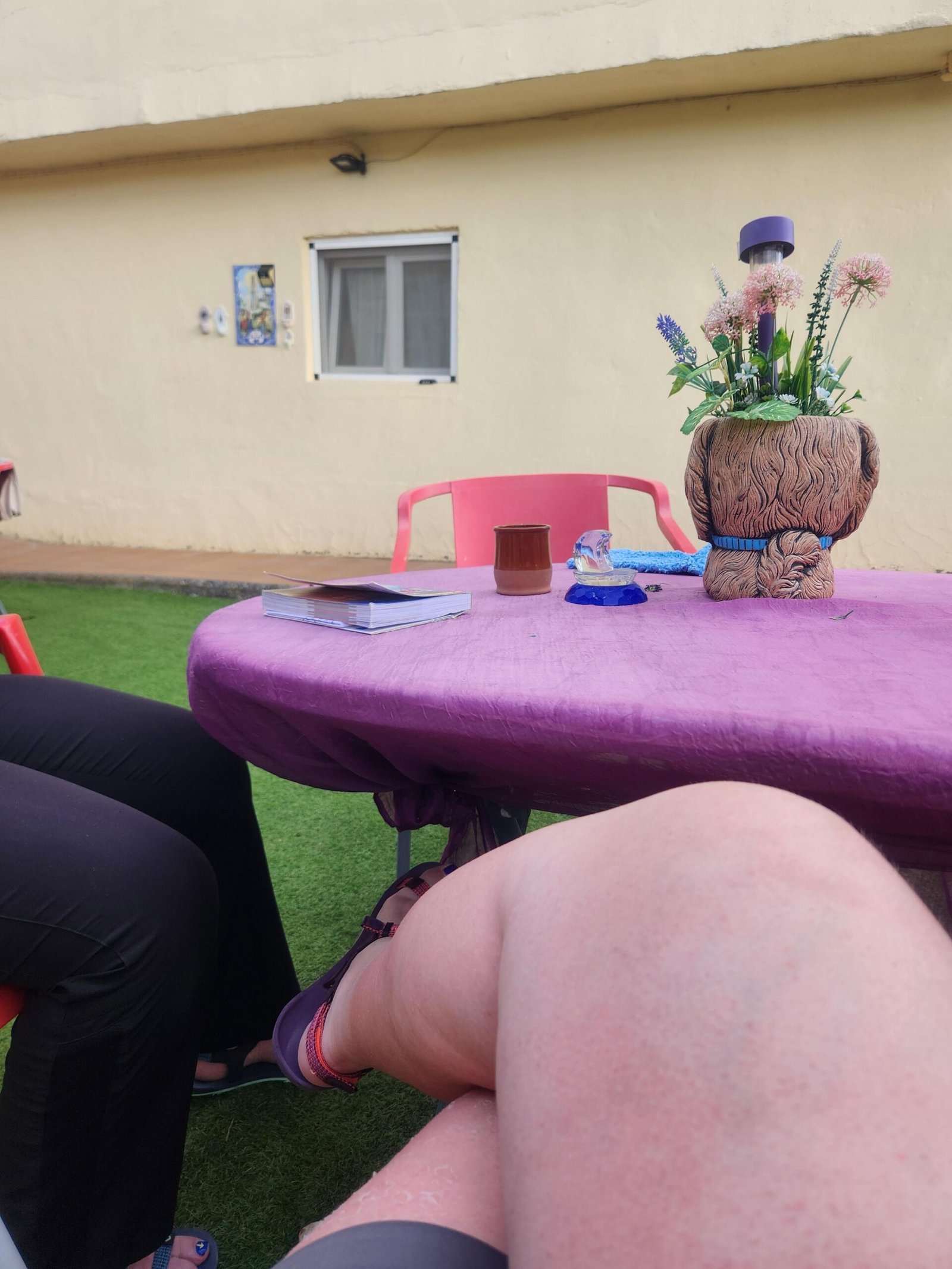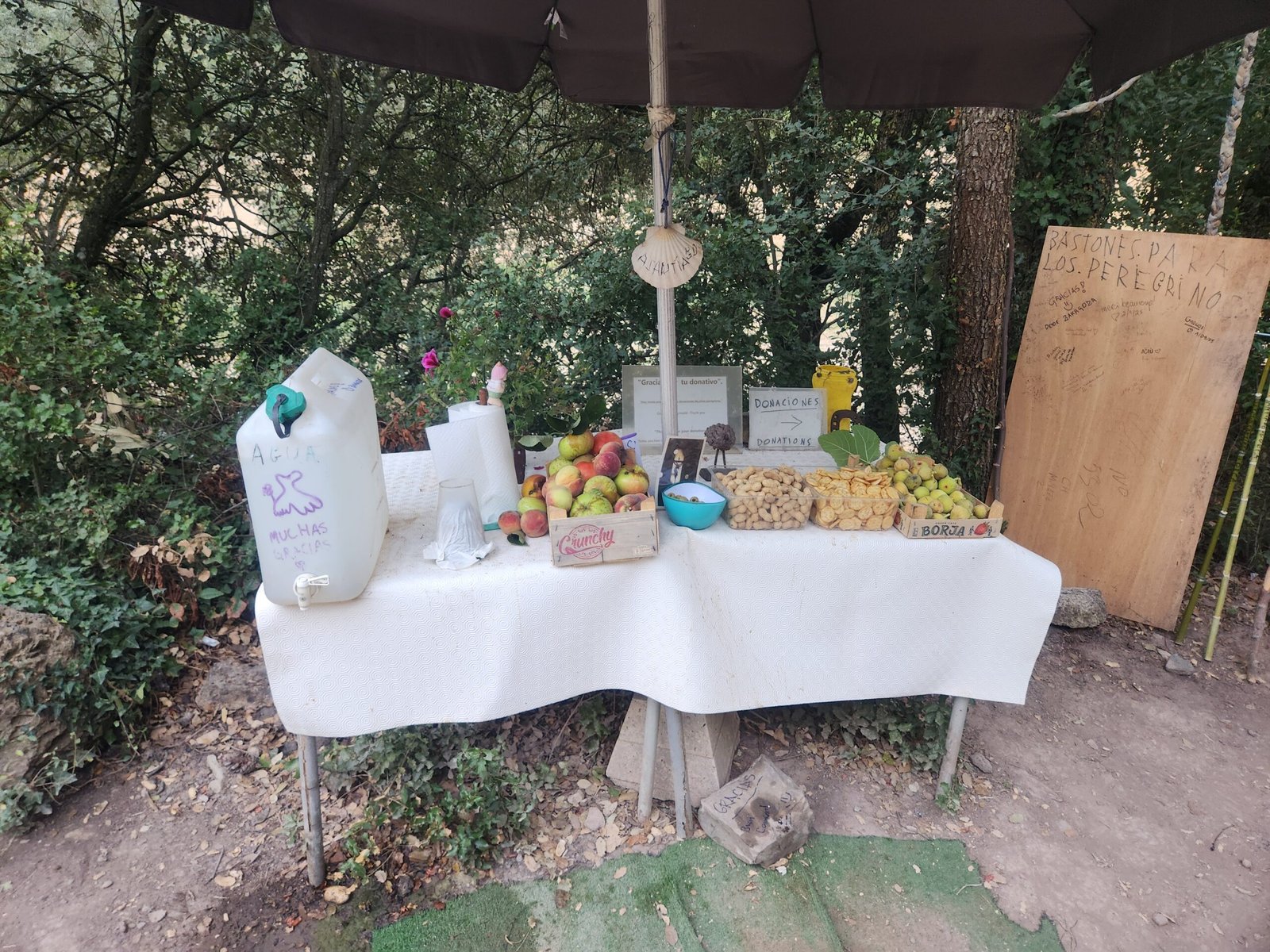 We did a longer walk today, about 15km. It did not feel like the signposts were correct today! After each sign, it seemed like we had done another 2kms, and yet it was only 1 or 1.5. We kept going. Our feet and bodies have kept up with the pace today. We saw a couple of local rest stops, including one outside of Lorca that was all by donation with a stand of water, figs, nuts, crackers, olives, and nectarines. So lovely! Apparently, there was a resident who set up this stand decades ago, then when she passed, her daughter continued. Now that her daughter is gone, the town continues to provide a beautiful little rest stop. Picture attached.