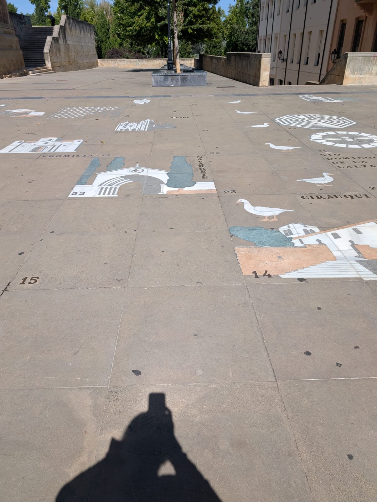 The goose game is an ancient game, similar to snakes and ladders. This one is set in a Camino theme. -