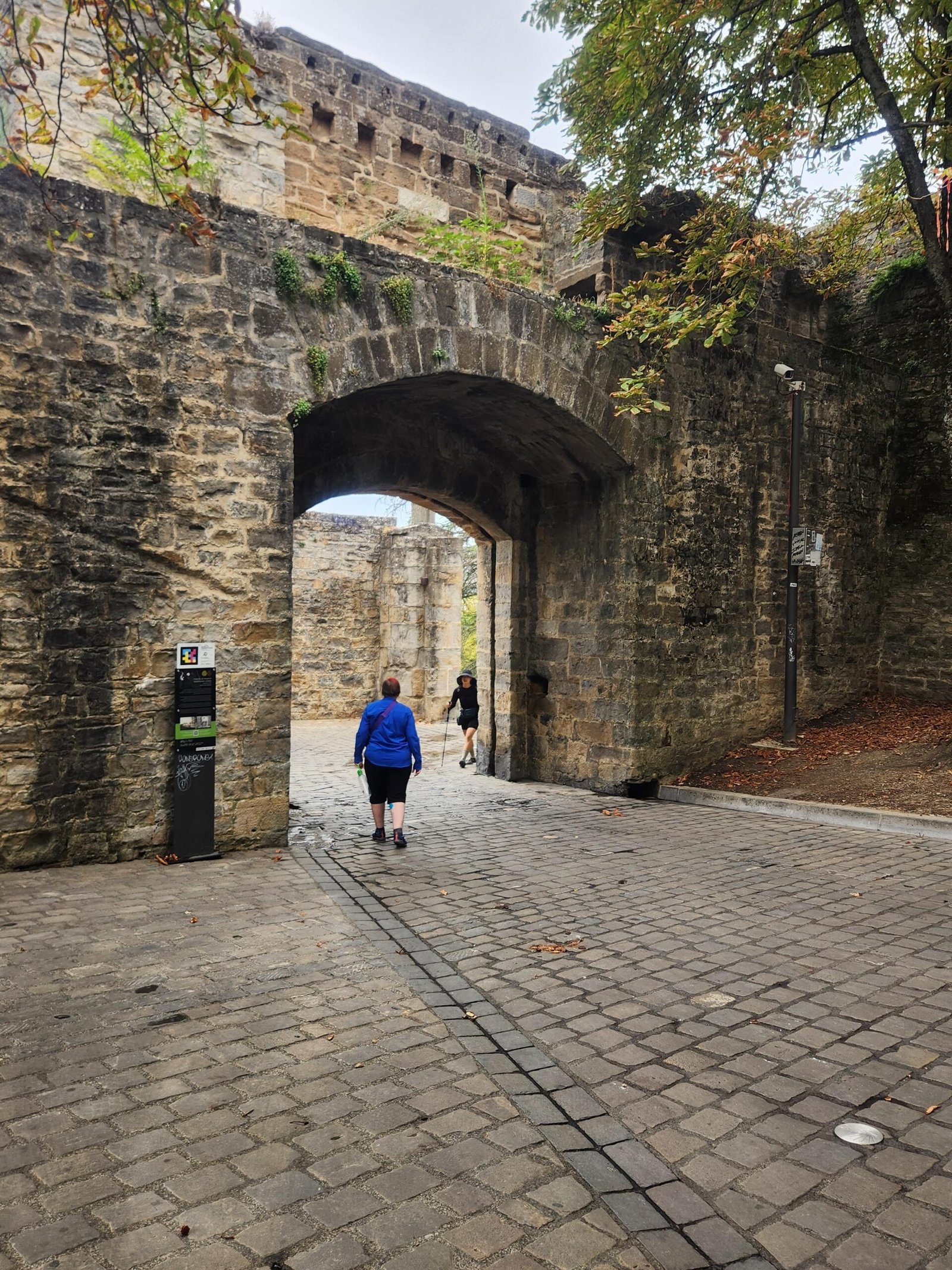 We were able to get a bus into Pamplona. Dad was convinced that the bus would come, I was not so sure, especially since the street had plastic barricades up for a festival from the night before. The bus stop was past the barricades. As of 9am, the festival was still going! Lots of music and dancing in the hall. The bus was due at 10, so it came by at 10:20ish, and we got on. Spanish timing- they say to get to the stop 30 minutes early, and the driver may be 10 minutes early or 20 minutes late!