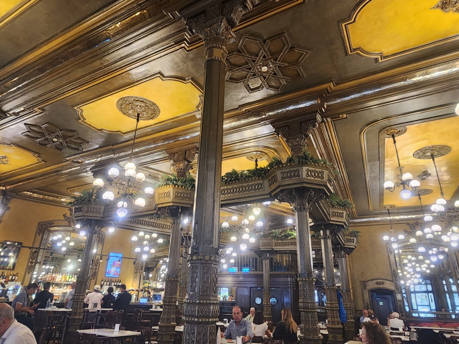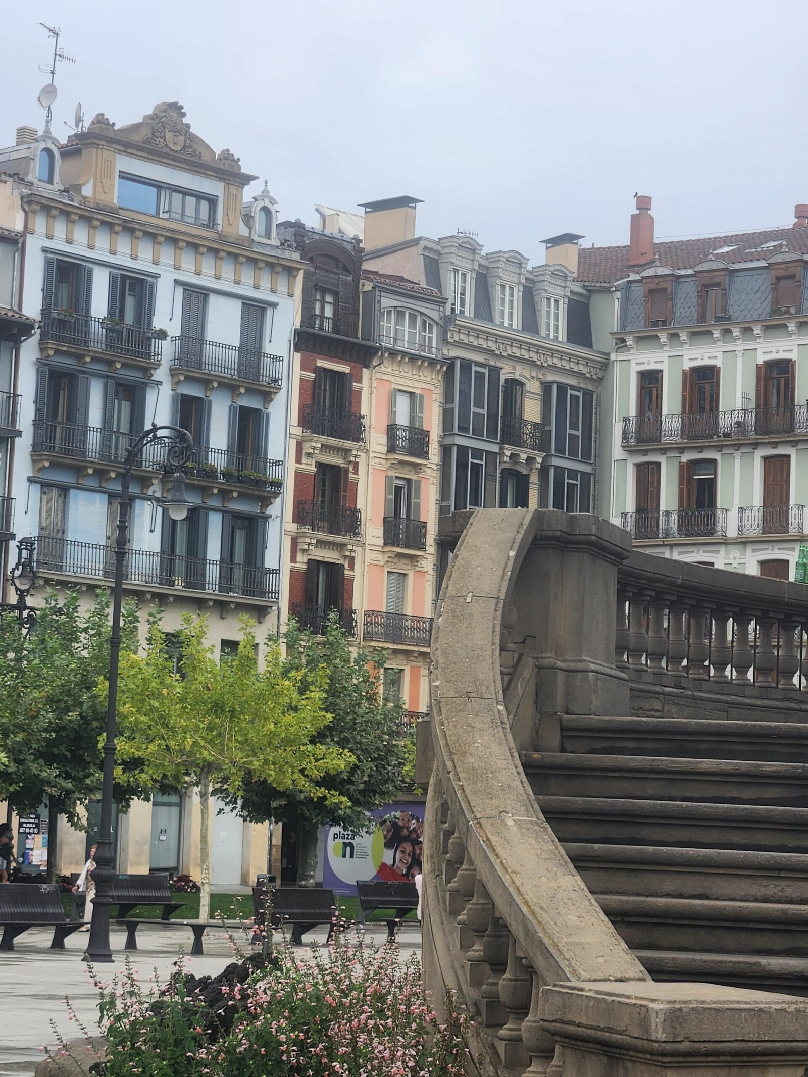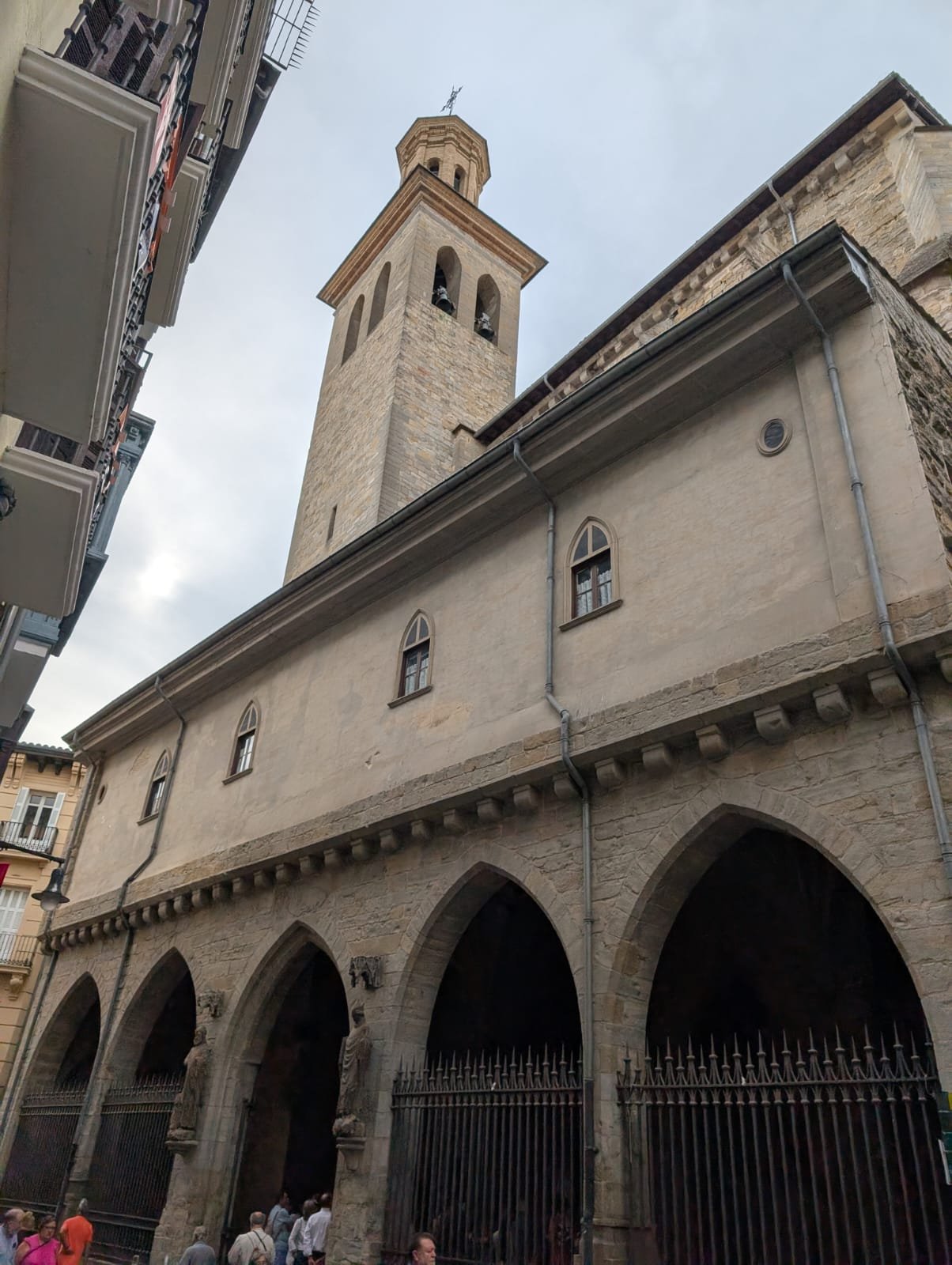 We came into Pamplona and went for our room. This one is in a newer area of the city, and it’s a bit far from the sights. No matter, we took a bus today. Got into Plaza del Castillo in the morning, and we ate breakfast and coffee at the Cafe Iruña. Pictures attached. We had a slice of torta, an omelette/tart with egg and potato and this one had ham and cheese in the middle. So delicious! The inside of the building is incredible with its wood moldings and details. Apparently the first bar to have electric lighting in the city. It was opened in 1888 and was a frequent haunt of Ernest Hemingway.We walked over to the Hotel la Perla in the corner of the square, where Hemingway stayed. We looked in the windows, because it felt like we weren’t dressed for the lobby. Also, there was a man who drove up in an Aston Martin coupe right outside the door. Didn’t know you could do that!