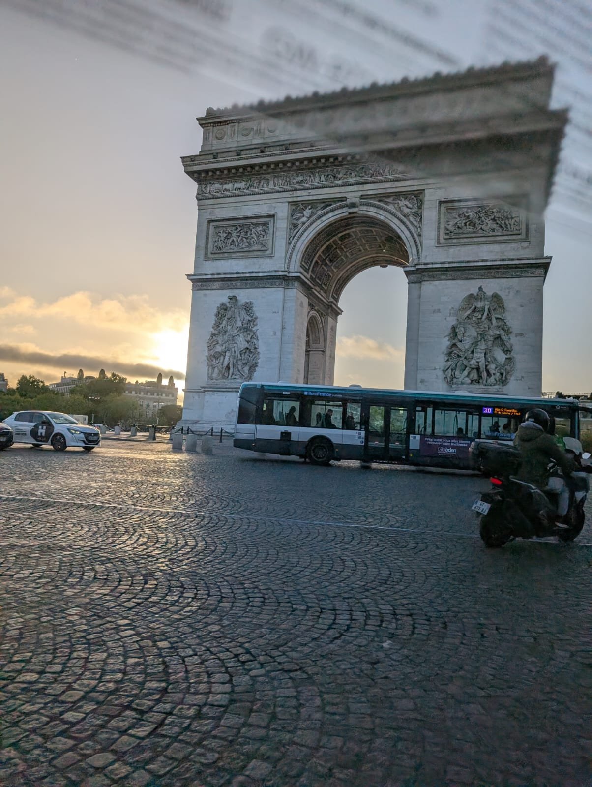 This is Sheila. Long post, I was planning to do After a complete lack of sleep on our overnight flight from Montreal (turbulence), we arrived in Paris as it was still dark. Looks kind of like any other city in the dark, but we went through immigration and were out in time to catch the sunrise.