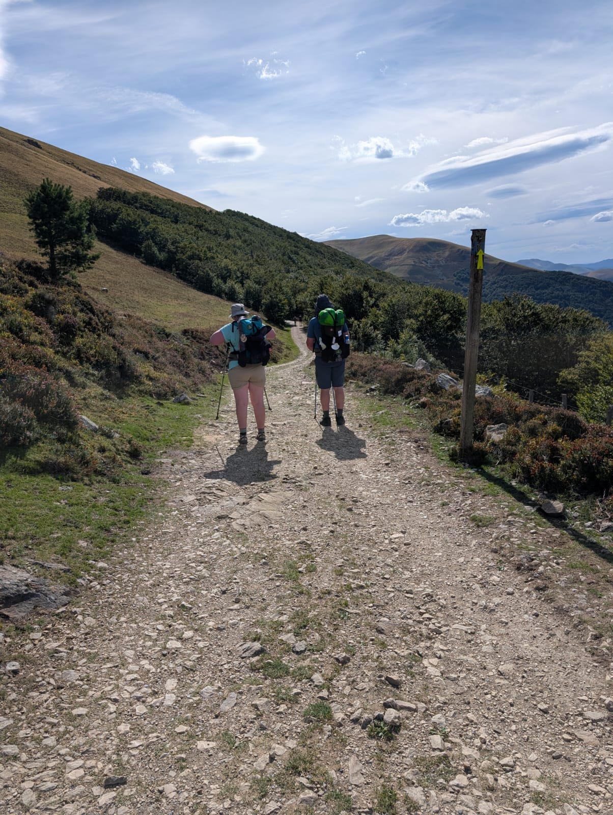 Did I mention it was a full day?? By that, I mean we hiked 27km in 11.5 hours! We took the hardest part and didn’t get the chance to break it up, due to a lack of accommodation in the mountains. So, we had to wind our way and climb a pass through the Pyrenees. We went from St. Jean elevation of 200 meters up to the highest point around 1450 meters. In some sections I was ready to grab the nearest sheep for a ride to the top. It was so windy up there too, probably 70km winds trying to blow us off the trail.
